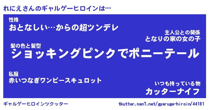 | 伝説のあだ名 | 『伝説の傭兵れにえ』『最強の忍者れにえ』 |