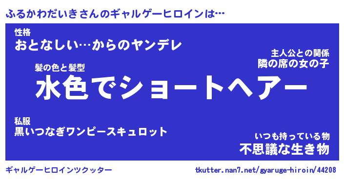 | 女子向けラノベタイトル風あだ名 | 『(仮)ふるかわだいきのやんごとなき事情』 |