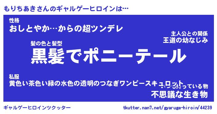 | 男性向けラノベタイトル風あだ名 | 『もりちあきの憂鬱』 |