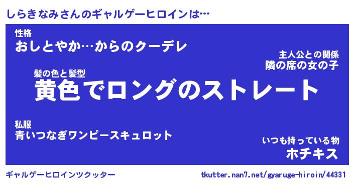 | ファンタジー風あだ名 | 『シラフェル』『エターナルシラキナミー』 |