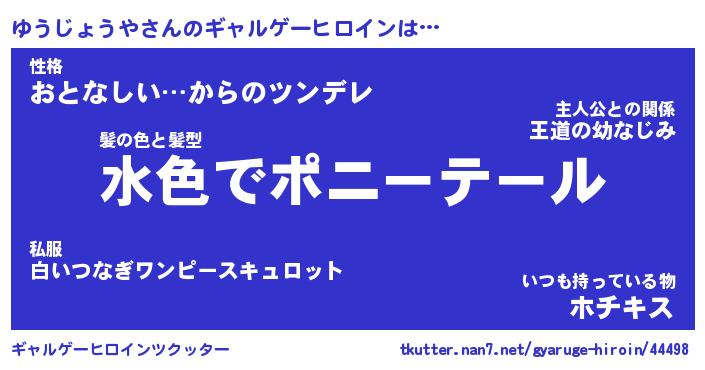 | 女子向けラノベタイトル風あだ名 | 『(仮)ゆうじょうやのやんごとなき事情』 |