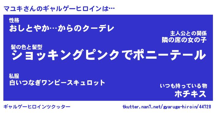 | 男性向けラノベタイトル風あだ名 | 『マユキの憂鬱』 |