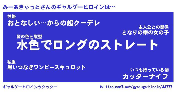 | 伝説のあだ名 | 『伝説のスナイパーみーあきゃっと』 |