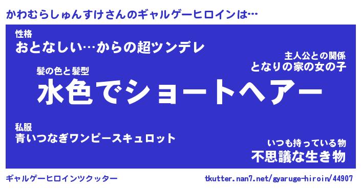 | 肩書あだ名 | 『かわむらしゅんすけ御曹司』 |