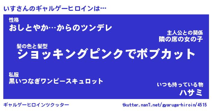 | ポケモン風あだ名 | 『イスチュウ』『イスダネ』『ヒイス』 |
