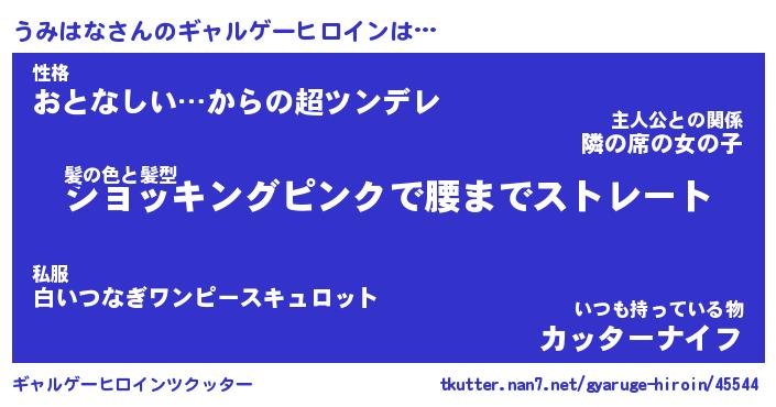 | ヘコむあだ名 | 『うみにー』『酢こんぶ』『うみ太郎』 |