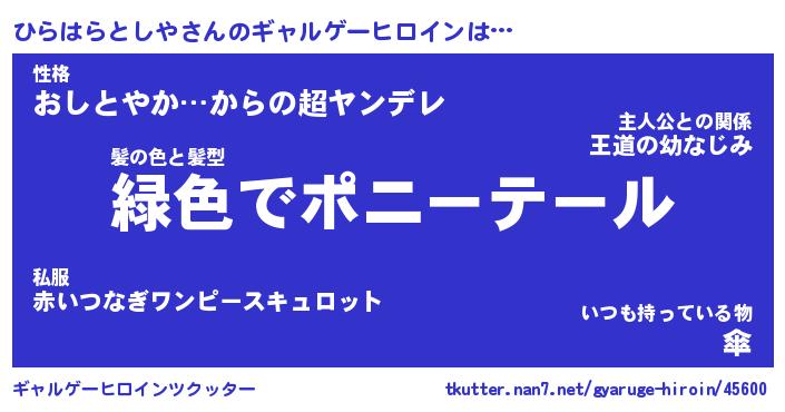 | ポケモン風あだ名 | 『ヒラチュウ』『ヒラハダネ』 |