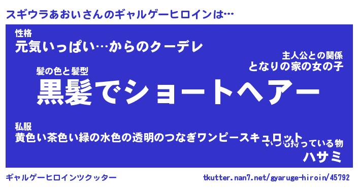 | 男性向けラノベタイトル風あだ名 | 『スギウラあおいの憂鬱』 |