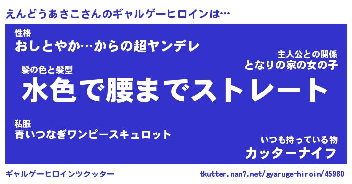 | 伝説のあだ名 | 『伝説の竜騎士えんどうあさこ』 |