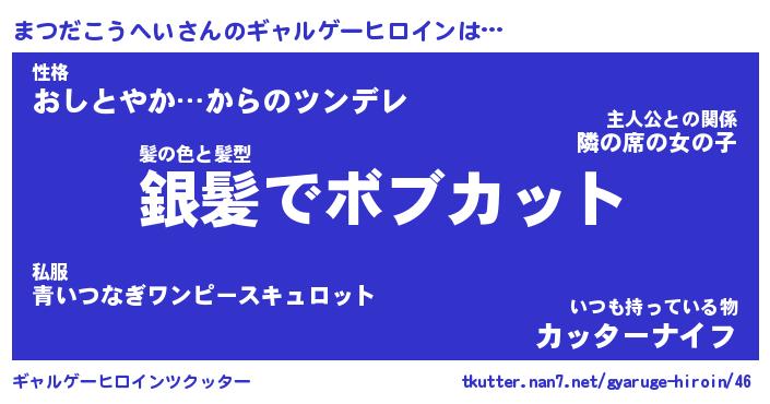 | 男性向けラノベタイトル風あだ名 | 『まつだこうへいの憂鬱』 |