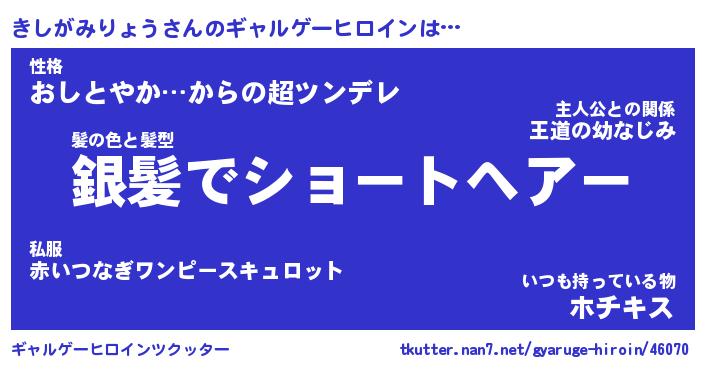 女子向けラノベタイトル風あだ名 | 『きしがみりょう姫と円卓の騎士』 |