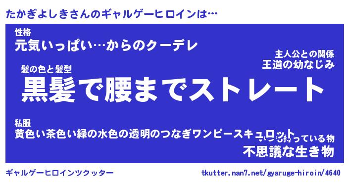 | 女子向けラノベタイトル風あだ名 | 『たかぎよしき姫と円卓の騎士』 |