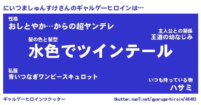 | 男性向けラノベタイトル風あだ名 | 『にいつましゅんすけの憂鬱』 |