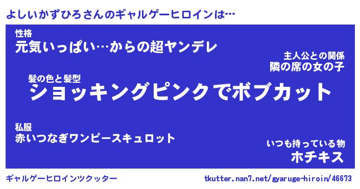| 女子向けラノベタイトル風あだ名 | 『(仮)よしいかずひろのやんごとなき事情』 |