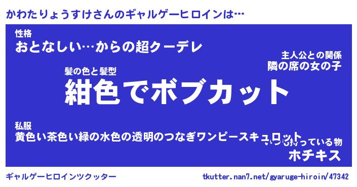 女子向けラノベタイトル風あだ名 | 『誰かこのかわたりょうすけを説明してください! ~契約から始まるウェディング~』 |
