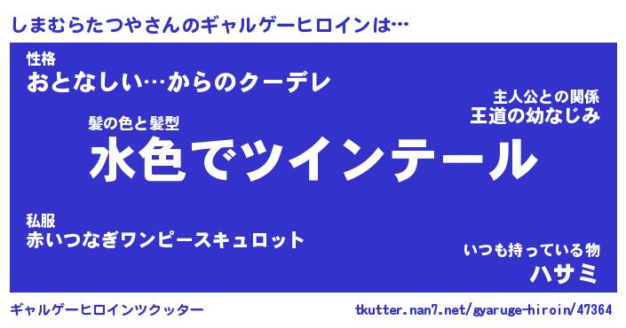 | 女子向けラノベタイトル風あだ名 | 『(仮)しまむらたつやのやんごとなき事情』 |