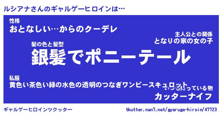 | 男性向けラノベタイトル風あだ名 | 『ルシアナの憂鬱』 |