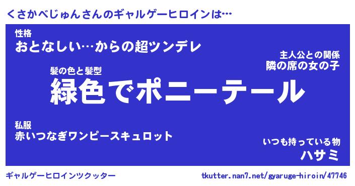 | 女子向けラノベタイトル風あだ名 | 『誰かこのくさかべじゅんを説明してください! ~契約から始まるウェディング~』 |