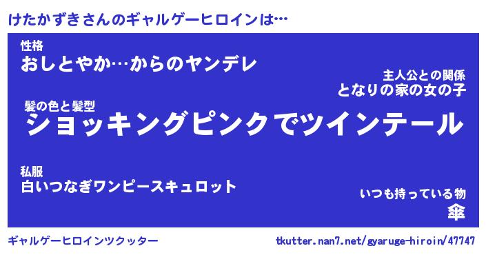 | 女子向けラノベタイトル風あだ名 | 『(仮)けたかずきのやんごとなき事情』 |