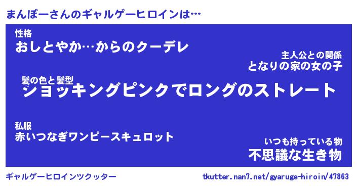 | 意味不明あだ名 | 『ペロリンまんぼー』『永久保存まんぼー』 |
