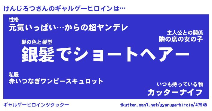 | ヒーロー風カッコイイあだ名 | 『スーパーケンジロツ』『暗黒騎士ケン』 |