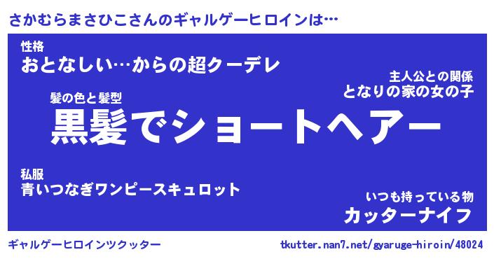 | 女子向けラノベタイトル風あだ名 | 『(仮)さかむらまさひこのやんごとなき事情』 |