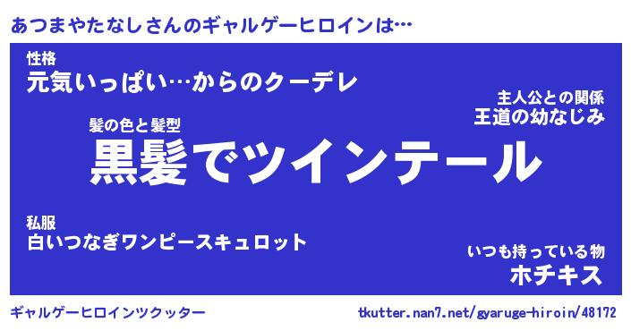 | 男性向けラノベタイトル風あだ名 | 『あつまやたなしの憂鬱』 |