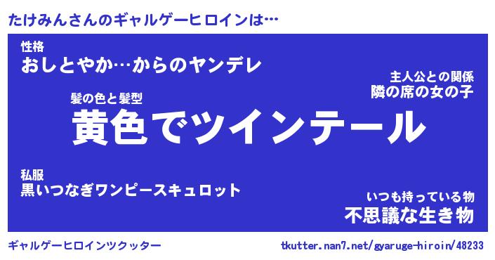 | ファンタジー風あだ名 | 『タケフェル』『エターナルタケミンー』 |