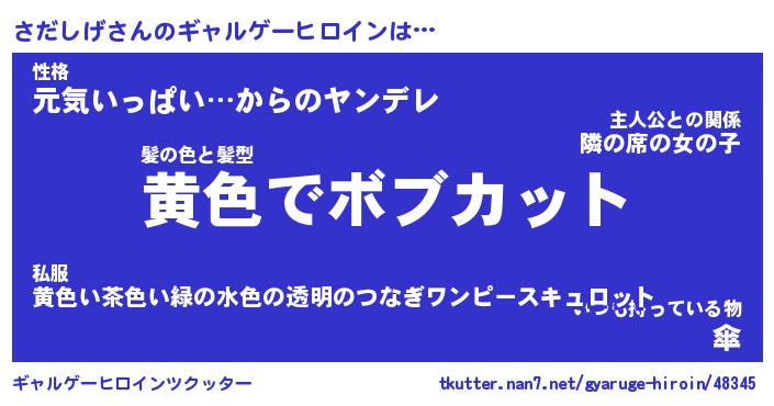 | 女子向けラノベタイトル風あだ名 | 『誰かこのさだしげを説明してください! ~契約から始まるウェディング~』 |