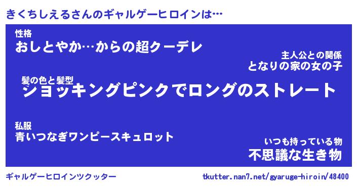 | 女子向けラノベタイトル風あだ名 | 『(仮)きくちしえるのやんごとなき事情』 |