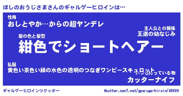 | 男性向けラノベタイトル風あだ名 | 『ホシノオウジサマアートオンライン』 |