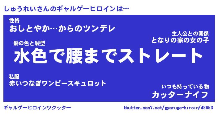 | ファンタジー風あだ名 | 『シュフェル』『エターナルシュウレイー』 |