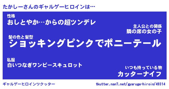 | 意味不明あだ名 | 『ペロリンたかしー』『永久保存たかしー』 |