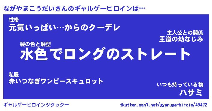 | 女子向けラノベタイトル風あだ名 | 『(仮)ながやまこうだいのやんごとなき事情』 |