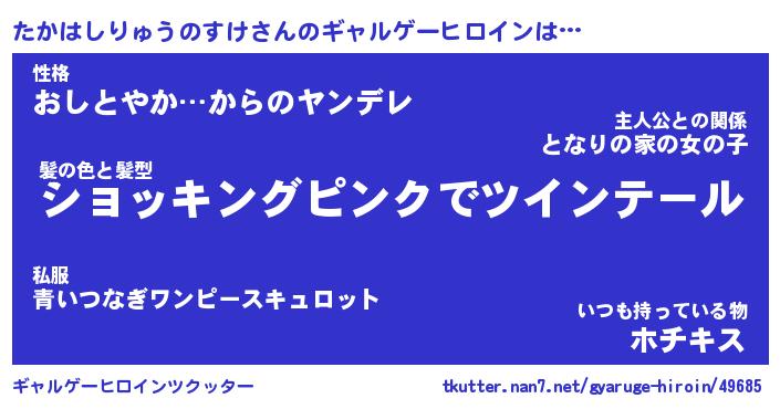 | 男性向けラノベタイトル風あだ名 | 『たかはしりゅうのすけの憂鬱』 |