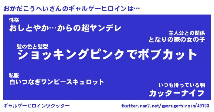 女子向けラノベタイトル風あだ名 | 『(仮)おかだこうへいのやんごとなき事情』 |