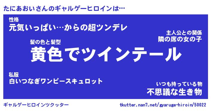 | 女子向けラノベタイトル風あだ名 | 『誰かこのたにあおいを説明してください! ~契約から始まるウェディング~』 |