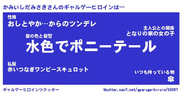 | 男性向けラノベタイトル風あだ名 | 『かみいしだみさきの憂鬱』 |