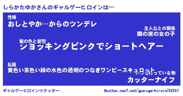 | 肩書あだ名 | 『しらかたゆか社長』『しらかたゆか班長』 |