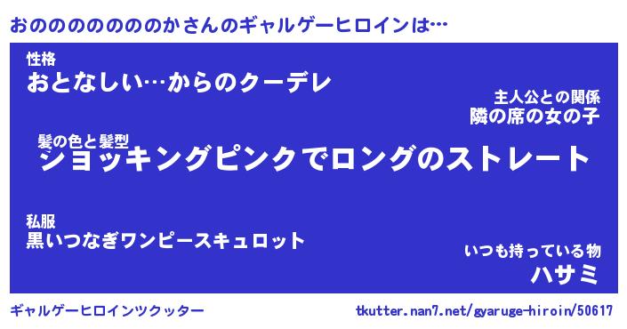 | 女子向けラノベタイトル風あだ名 | 『(仮)おのののののののかのやんごとなき事情』 |