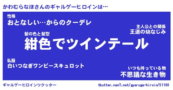 | 女子向けラノベタイトル風あだ名 | 『誰かこのかわむらなほを説明してください! ~契約から始まるウェディング~』 |