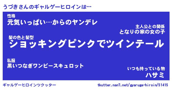 | ファンタジー風あだ名 | 『ウヅフェル』『エターナルウヅキー』 |