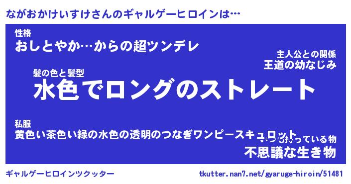 | 女子向けラノベタイトル風あだ名 | 『(仮)ながおかけいすけのやんごとなき事情』 |