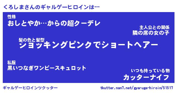 | 意味不明あだ名 | 『ペロリンくろしま』『永久保存くろしま』 |