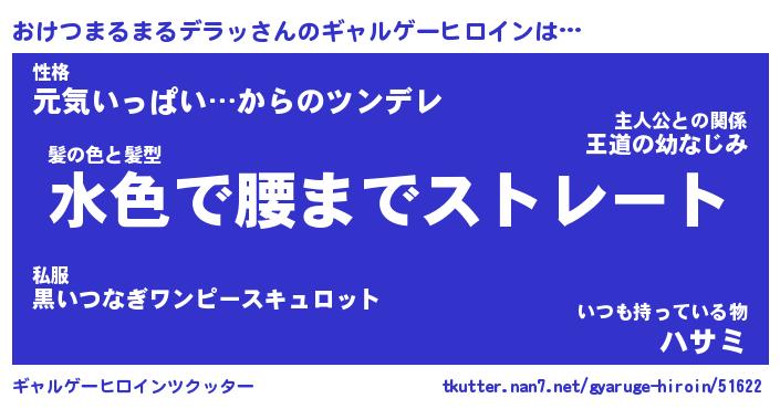 | 女子向けラノベタイトル風あだ名 | 『(仮)おけつまるまるデラッのやんごとなき事情』 |
