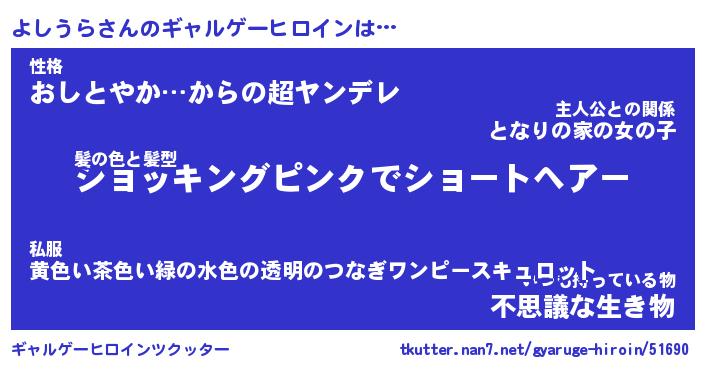 | 女子向けラノベタイトル風あだ名 | 『(仮)よしうらのやんごとなき事情』 |
