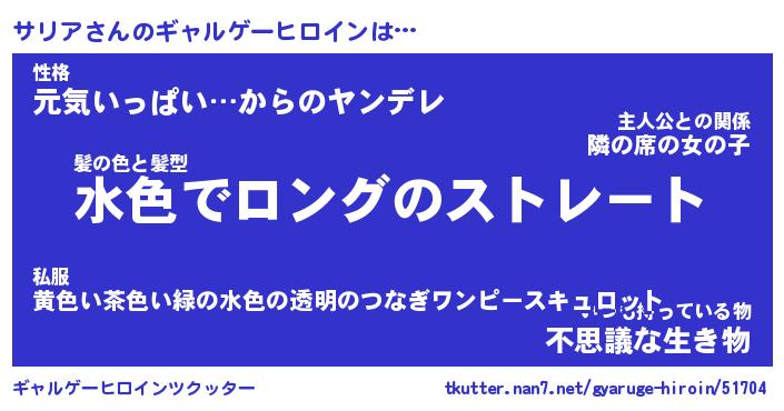 | 男性向けラノベタイトル風あだ名 | 『サリアの憂鬱』 |