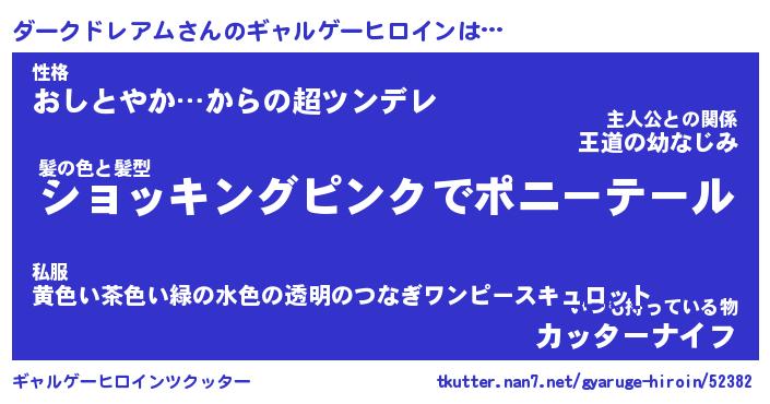 | 女子向けラノベタイトル風あだ名 | 『(仮)ダークドレアムのやんごとなき事情』 |