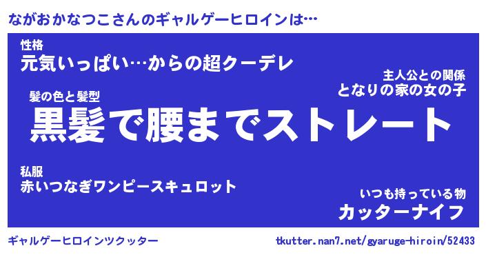 | 女子向けラノベタイトル風あだ名 | 『ながおかなつこ姫と円卓の騎士』 |