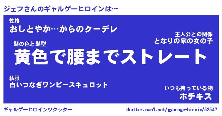 | ファンタジー風あだ名 | 『ジェフェル』『エターナルジェフー』 |